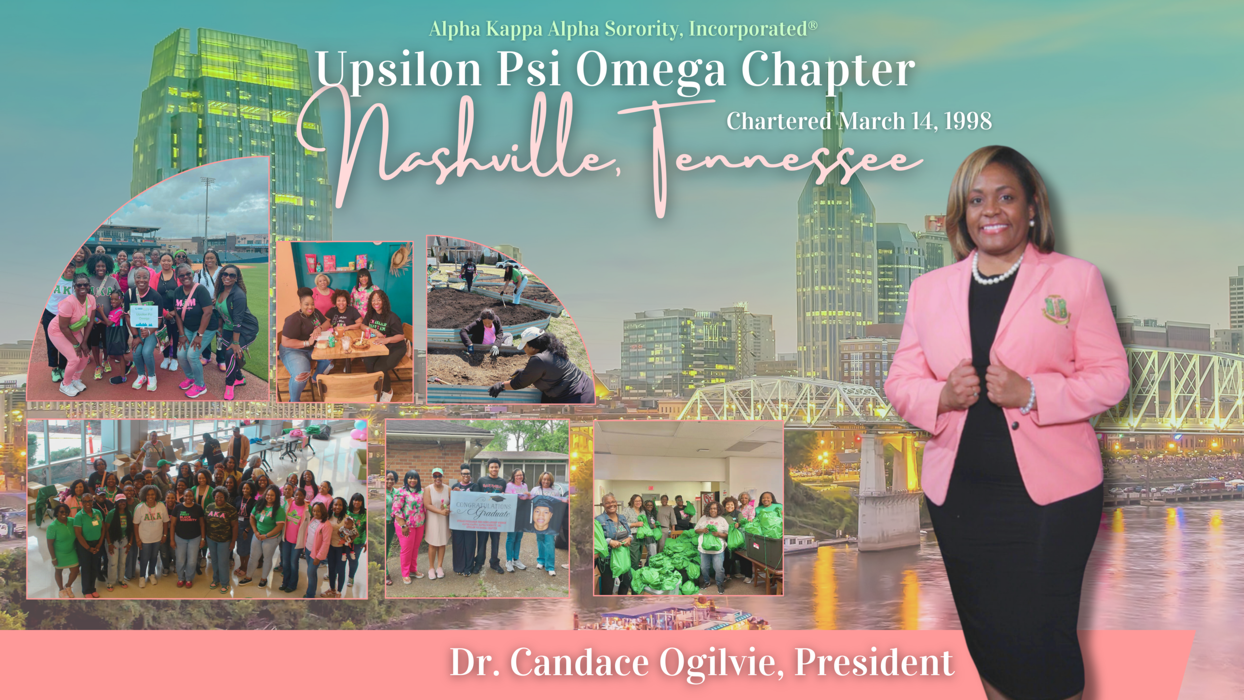 Welcome and thank you for visiting the official website of Alpha Kappa Alpha Sorority, Incorporated® Upsilon Psi Omega Chapter! It is my honor to lead this chapter as we celebrate 25 years of service to the Nashville community.